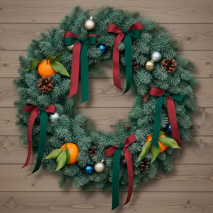Венки из хвойных ветвей — давняя европейская традиция, которая укоренилась и у нас. Классический рождественский венок символизирует круг вечности и ожидание праздника; обычно его вешают на дверь или используют как настольную композицию с четырьмя свечами (адвент‑венок). Ветки нобилиса особенно популярны для таких изделий: они хорошо сгибаются при формировании круга, долго сохраняют свежий вид и создают аккуратную, праздничную основу для декора (ленты, шишки, ягодные элементы). Венок из нобилиса смотрится аккуратно и стильно — как для традиционного, так и для современного интерьера.