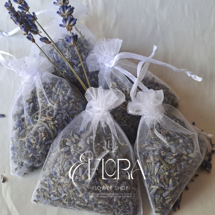 Набор из 5 саше с бутончиками лаванды. Мешочки из органзы, наполненные бутончиками лаванды, удобно положить в шкаф для ароматизации постельного белья или другой одежды. Лаванда обладает ароматом, который отпугивает моль, поэтому саше могут быть использованы также для хранения вместе с одеждой из натуральной шерсти и меха. Цена указана за 1 набор из 5 саше.
