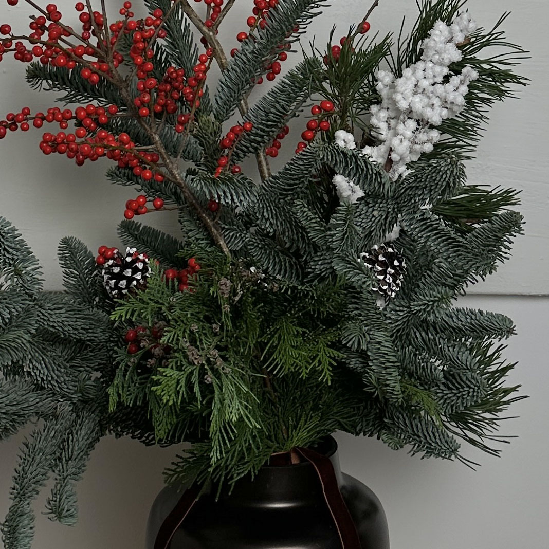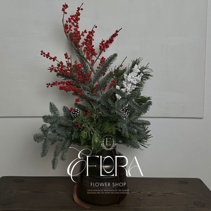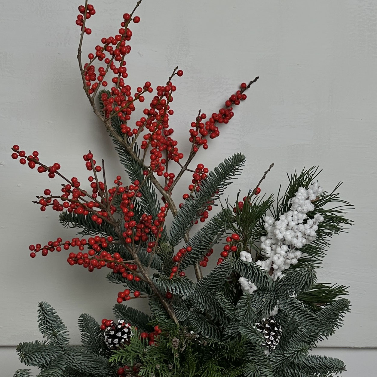 - Набор зимнего декора для дома. В составе ветки нобилиса, который не осыпается и долго сохраняет декоративность, ветки илекса, ветки туи, "заснеженные" шишки, искусственная заснеженная ветка. По желанию можно ее заменить на ветку хлопка. Ваза продается отдельно.